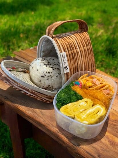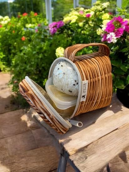 コンパクトで持ち運びに便利なおにぎり専用のケースです。おにぎりと小さなお弁当箱が入ります。コンパクトですが、そういえば胃袋の大きさと変わらない!サイズなので、案外お腹いっぱいになる量が入ります。