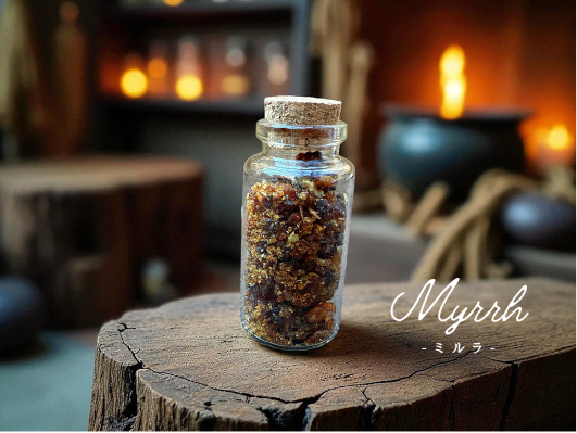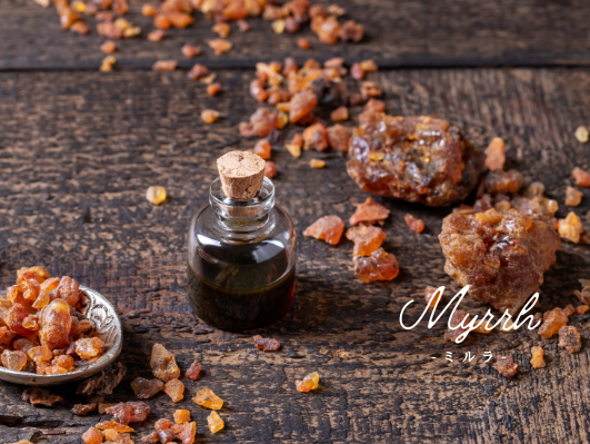ミルラ(没薬)は、心身の浄化や精神の安定に用いられる、聖書にも登場する樹脂です。精油を香らせることで空間の淀みを浄化し、冷静さと強さを取り戻し、集中力を高める効果が期待できます。また、抗炎症・殺菌作用から口腔ケアや呼吸器系のサポートにも利用されます。