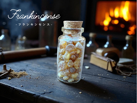 フランキンセンス(乳香)には心身の浄化作用があるとされ、乳香は歴史的に宗教儀式や瞑想、リラックス目的で利用されてきました。心を落ち着かせて集中力を高めたり、過去の感情からの解放を促したりする効果があるとされ、精油は空間浄化スプレーやお香、アロマオイルとして広く使われています。