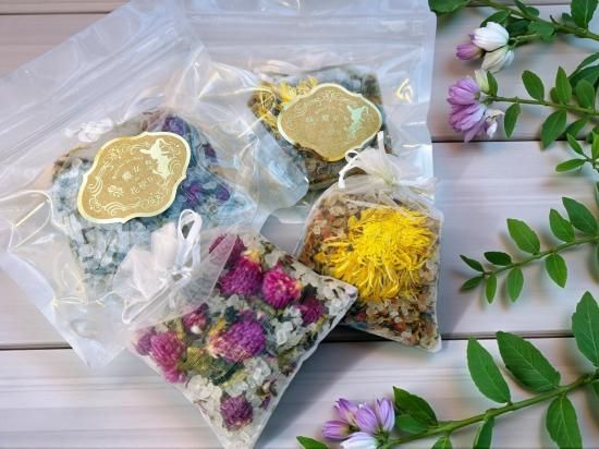 ・このままお風呂で芳香を楽しんでください。その後は捨てたり、ハーブソルトは乾燥させてポプリとしてもお使いいただいただけます。最初からポプリとしてや、可愛い器に移して浄化ソルトとしてお部屋のインテリアとしてもお楽しみください。